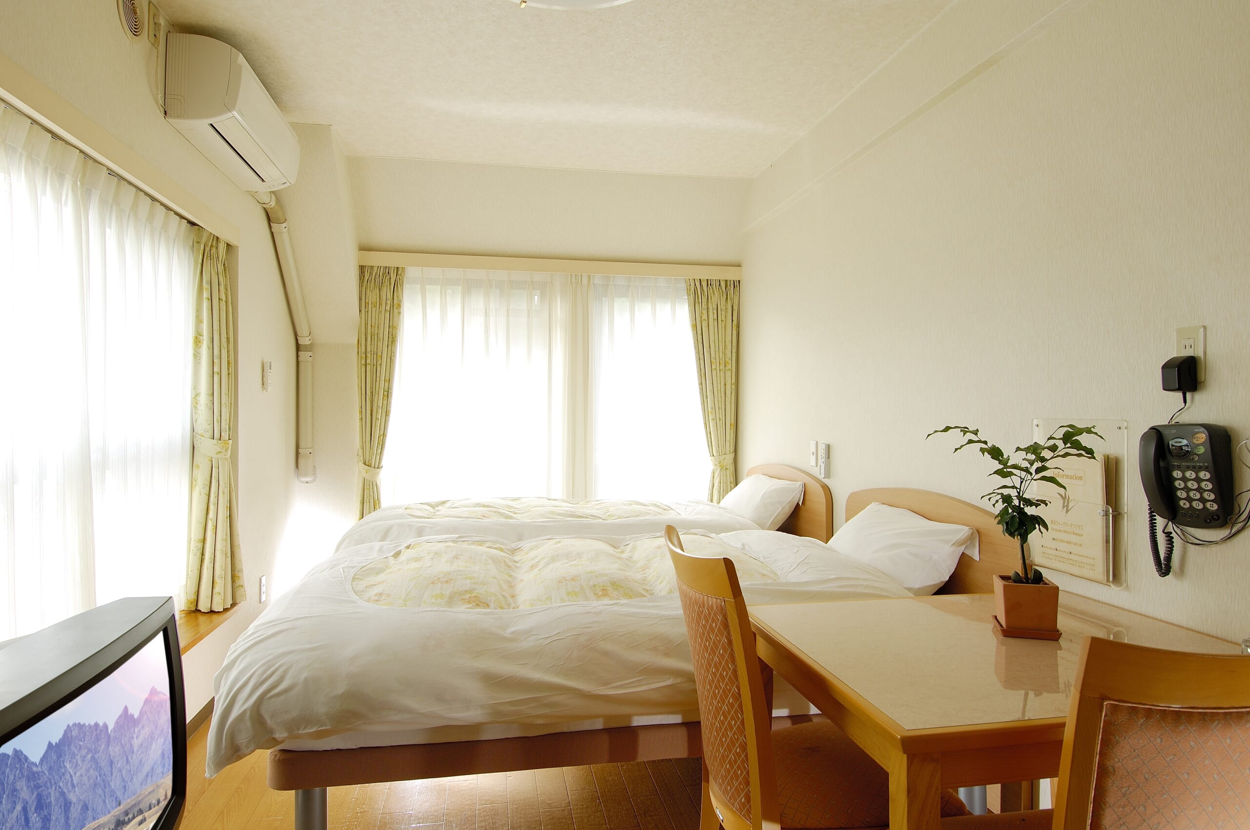 ベッド / テレビ台 / 椅子 / テーブル / カーテン / 寝具一式